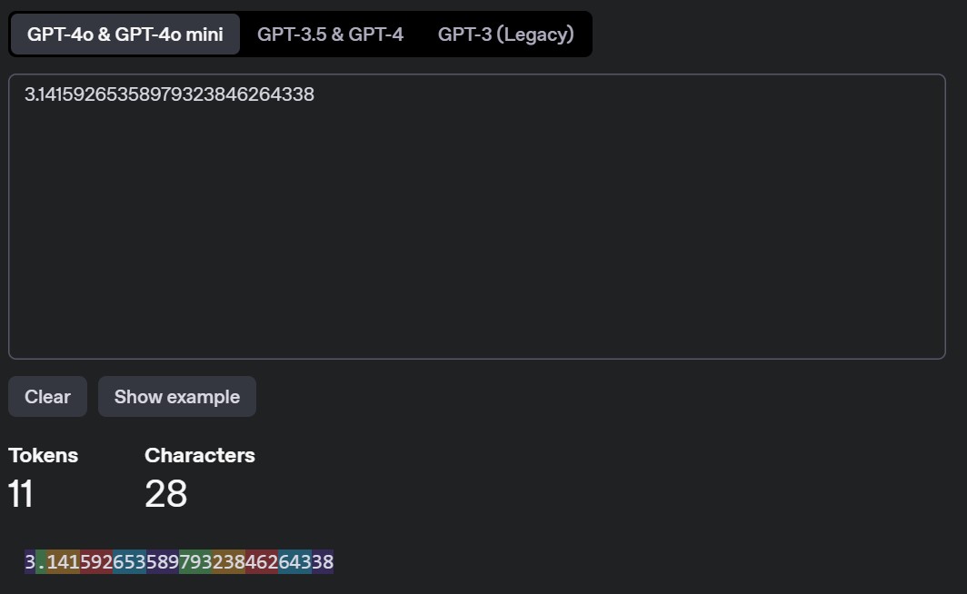 - 日本語の場合: 1文字≒1~3トークンで、文字によって異なる